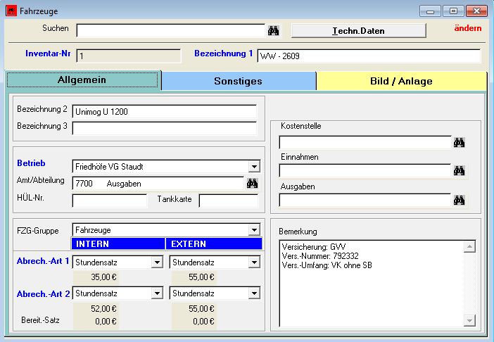 - Fahreug- und Maschinenverwaltung für Leistungen und Kosten