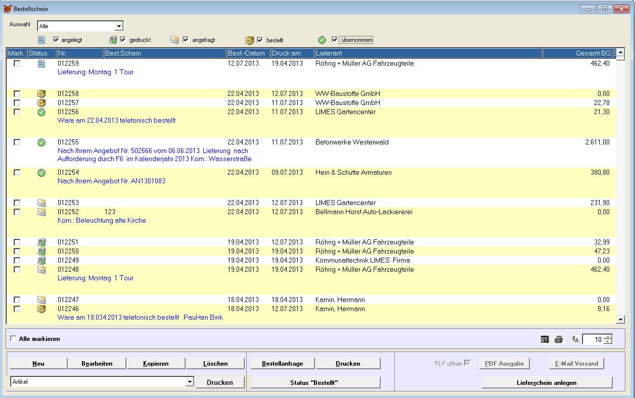- Materialverwaltung mit Bestellwesen und Lieferscheinverwaltung