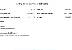 Bei der Auftragsanlage werden alle für die Abrechnung relevanten Kennzahlen (Doppik oder Kameral) wie Erlöskonten, Produkte, Kostenstellen, Kostenträger oder Haushaltsstellen zugeordnet.Es können unterschiedliche Abrechnungsvarianten eingestellt werden (Abrechnung nach internen und externen Sätzen, Abrechnung nach Angebotspreis). Entsprechend der bei der Auftragsanlage eingestellten Daten erfolgt die später die Leistungserfassung bzw. die Erstellung der Rechnung als Sammel- oder Einzelrechnung.Außerdem können weitere statistische Kennzeichen wie Tätigkeiten, Objekte, Ortsteile zugeordnet werden, die für Auswertungen zur Verfügung stehen. Für Asufträge oder Objekte können auch ein Leistungsverzeichnis erstellt werden.Der Zugriff auf Standardtextbausteine erleichtert die Auftragsanlage. Bei vielen Aufträgen können Einsatzort und Tätigkeit sofort zugeordnet werden. Nach der Anlage eines Auftrages kann direkt ein Einsatz- oder Rapportzettel für die Mitarbeiter gedruckt werden. Mit der Auftragsplanung kann direkt die Arbeitsvorbereitung durchgeführt werden. Die Bearbeitung der Aufträge, das Abfragen von Aufträgen erfolgt über eine komfortable Auftragsübersicht mit einfachen und schnellen Filterfunktionen.