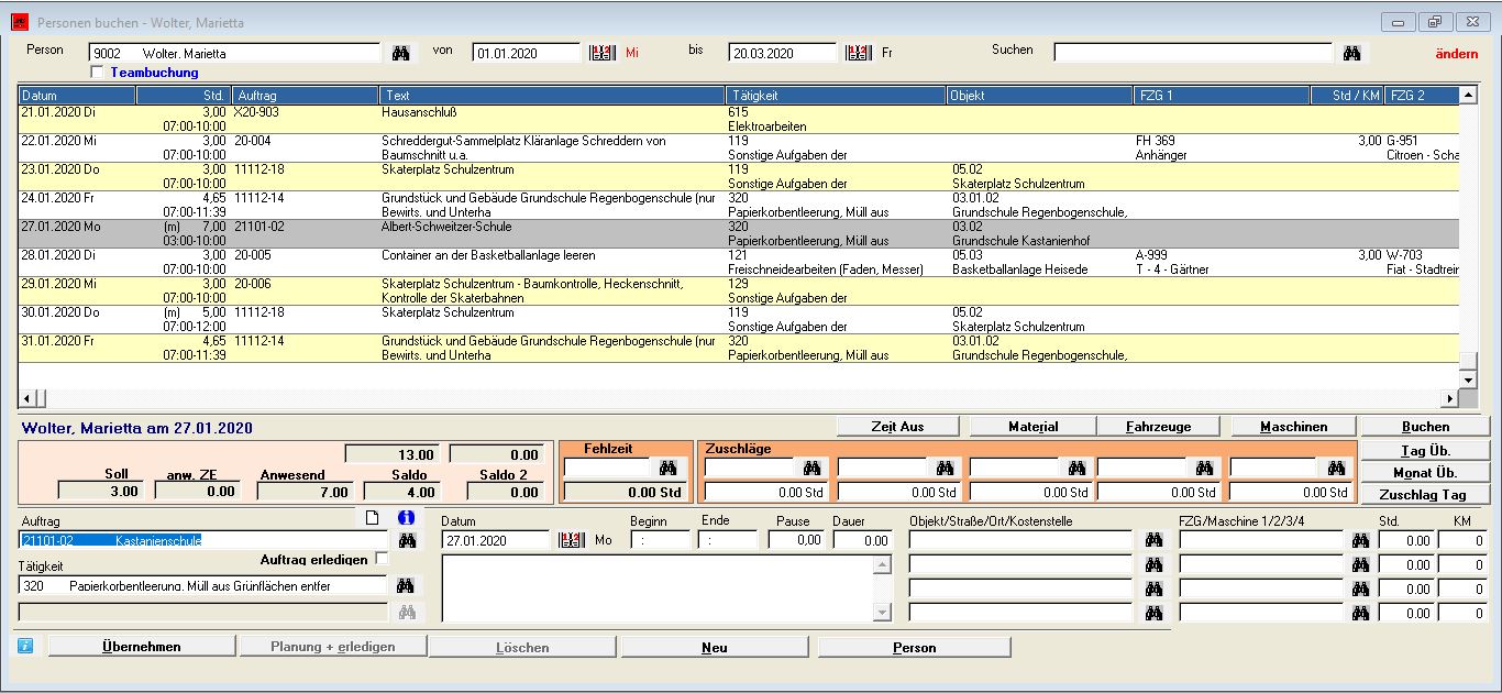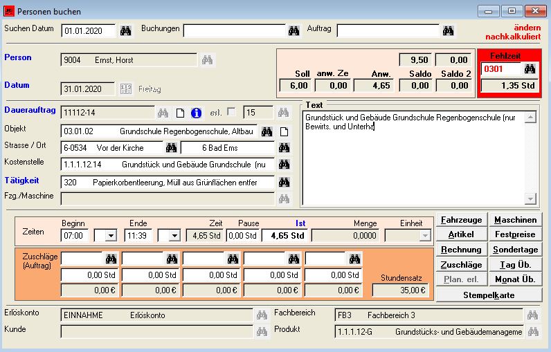 Beim Buchen der Rapportzettel werden die Arbeitszeitkonten der Mitarbeiter mitgeführt. Überstunden, Zeitzuschläge und Zulagen können häufig automatisch ermittelt werden. Aus allen Buchungsprogrammen können Sonderfälle wie Abfeiern, Bereitschaftsstunden usw. über die Tagesübersicht des jeweiligen Mitarbeiters mitgeführt werden, so dass über die Auftragszeiterfassung die Vorgaben für die Lohnabrechnung am Monatsende zur Verfügung gestellt werden.