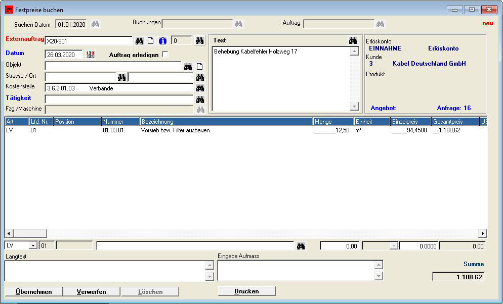 - Auftragsverwaltung von Dauer, Einzel und Externen Aufträgen